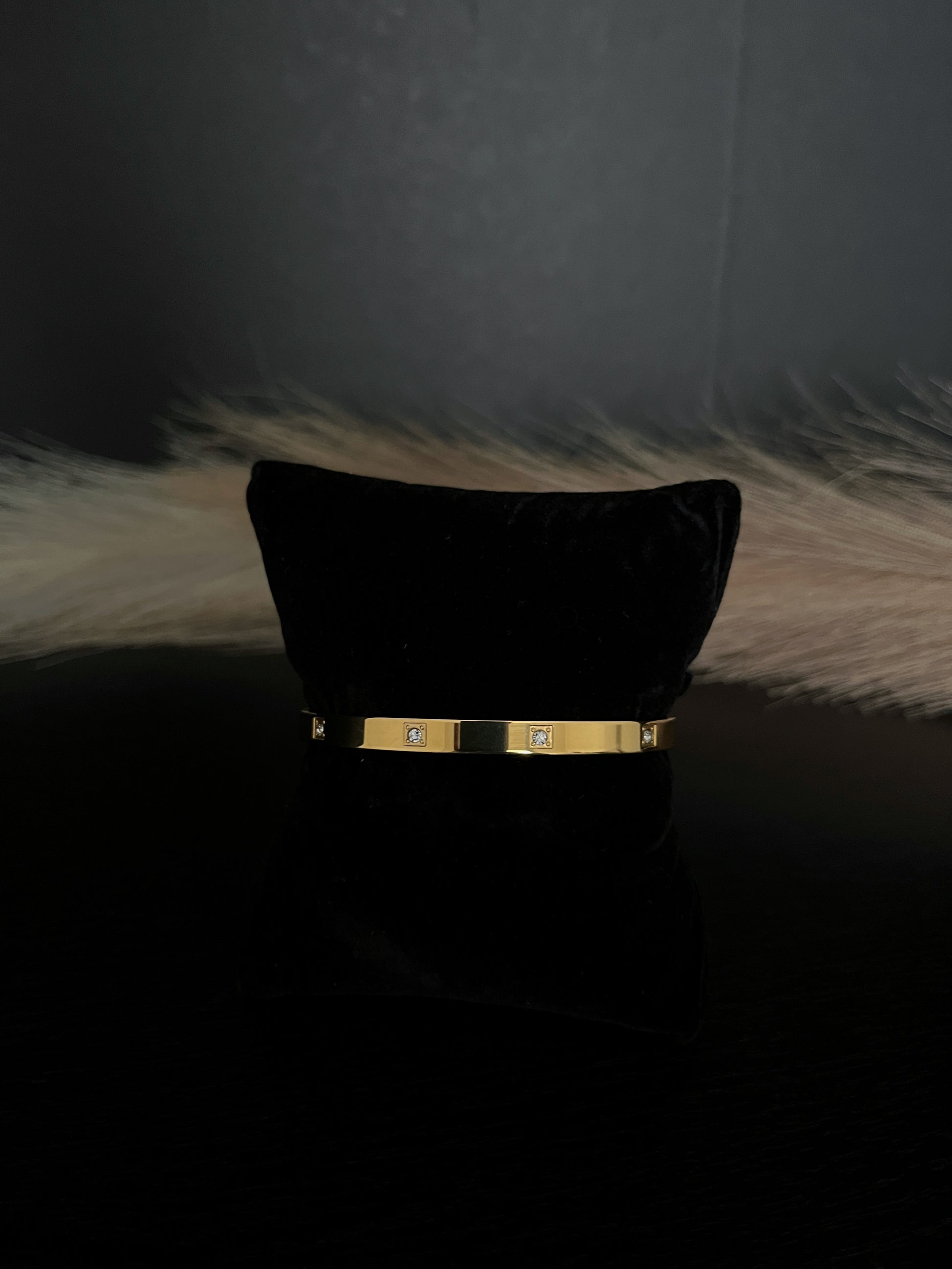Add a touch of elegance and sparkle to your look with our Elva Stainless Steel Bangle Bracelet, featuring a dazzling cubic zirconia. This sleek and modern design pairs effortlessly with any outfit, whether worn solo for a minimalist vibe or stacked for added glamour.