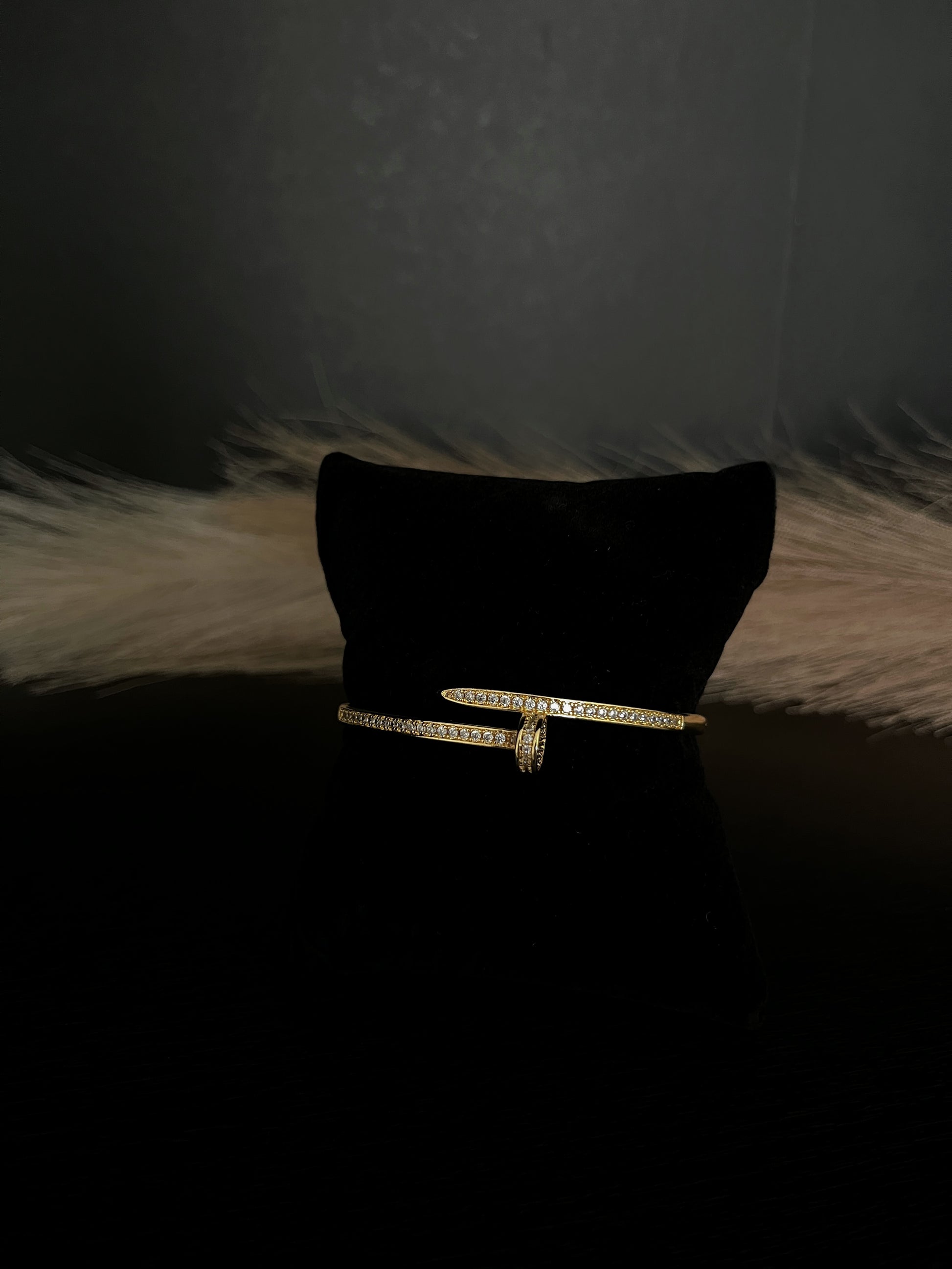 Mira Stainless Steel Nail Bangle Bracelet with Cubic Zirconia - Gold